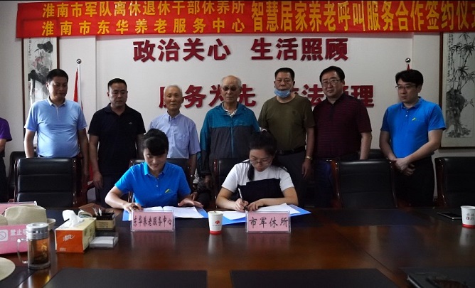 6月24日下午,淮南市東華養(yǎng)老服務(wù)中心與市軍休所簽訂《智慧居家養(yǎng)老呼叫服務(wù)合作協(xié)議》,簽約儀式在市軍休所會(huì)議室舉行。市退役軍人事務(wù)局黨組成員、副局長余濤,集團(tuán)公司副總經(jīng)理王龍出席簽約儀式。東華養(yǎng)老服務(wù)中心經(jīng)理吳義、副經(jīng)理陸曉虎和在淮軍休干部參加了簽約儀式。