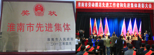 近日,淮南市洞山賓館禮堂門前彩旗招展,彩燈高掛,充滿節(jié)日氣氛,市勞動模范先進工作者和先進集體表彰大會在這里隆重舉行。